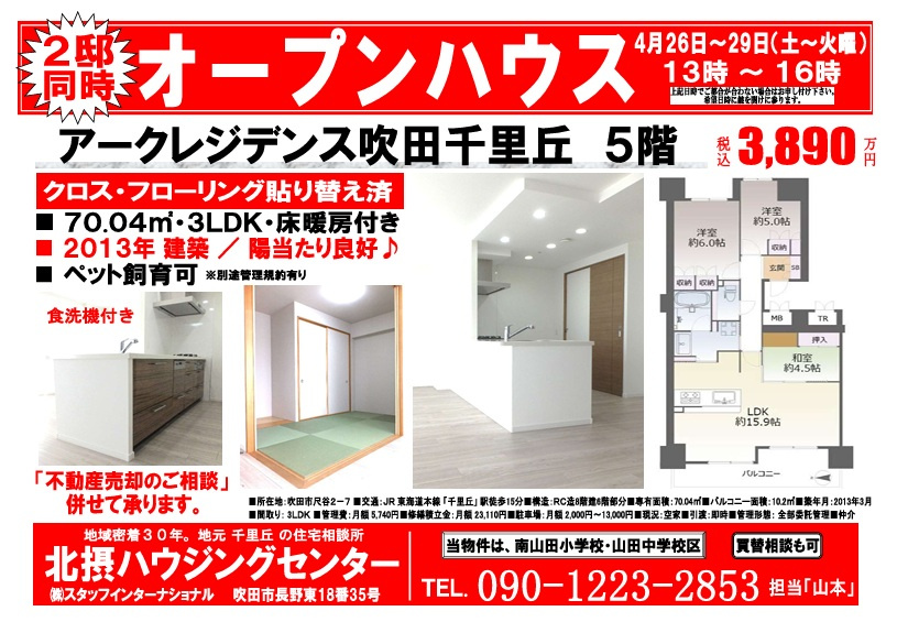 北摂ハウジングセンターTOP > 北摂ハウジングセンター 千里丘本店のブログ記事一覧 > 今週のオープンハウス情報【4月26日(土)~29日(祝)】